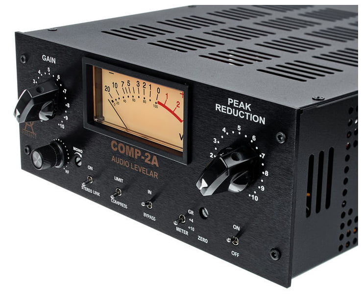 Проект Золотого віку COMP-2A — це одноканальний старовинний компресор/лімітер із вакуумними лампами та трансформаторно-симетричним входом і виходом . Схеми, що використовуються в COMP-2A, засновані на класичній конструкції, яка спочатку була вироблена на початку 1960-х років і була призначена для програм мовлення. Налаштувати потрібну компресію надзвичайно просто за допомогою лише 2 ручок «Gain» і «Peak Reduction». Класичний вимірювач VU надійно показує рівень. Два пристрої для стереосигналів можна з’єднати через вхід зв’язку.