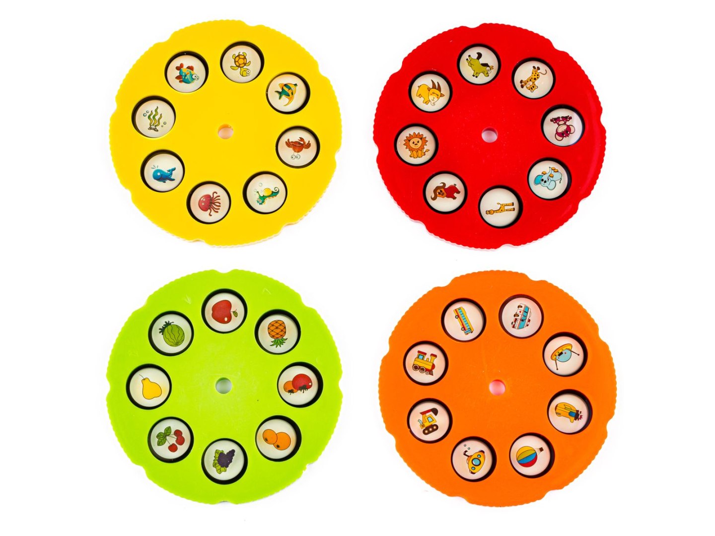 транспортні засоби, водні тварини, фрукти та овочі та тварини.