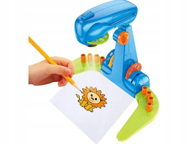 Іграшка має регульовану руку проектора, тому ви можете вільно встановити свою висоту - це чудове рішення, яке робить дитину не покрити і встановити "розмір" креслення. Проектор додатково має регульований об'єктив, щоб ми могли встановити фокус відображеного креслення. Світло лампи проектора повністю безпечне.
