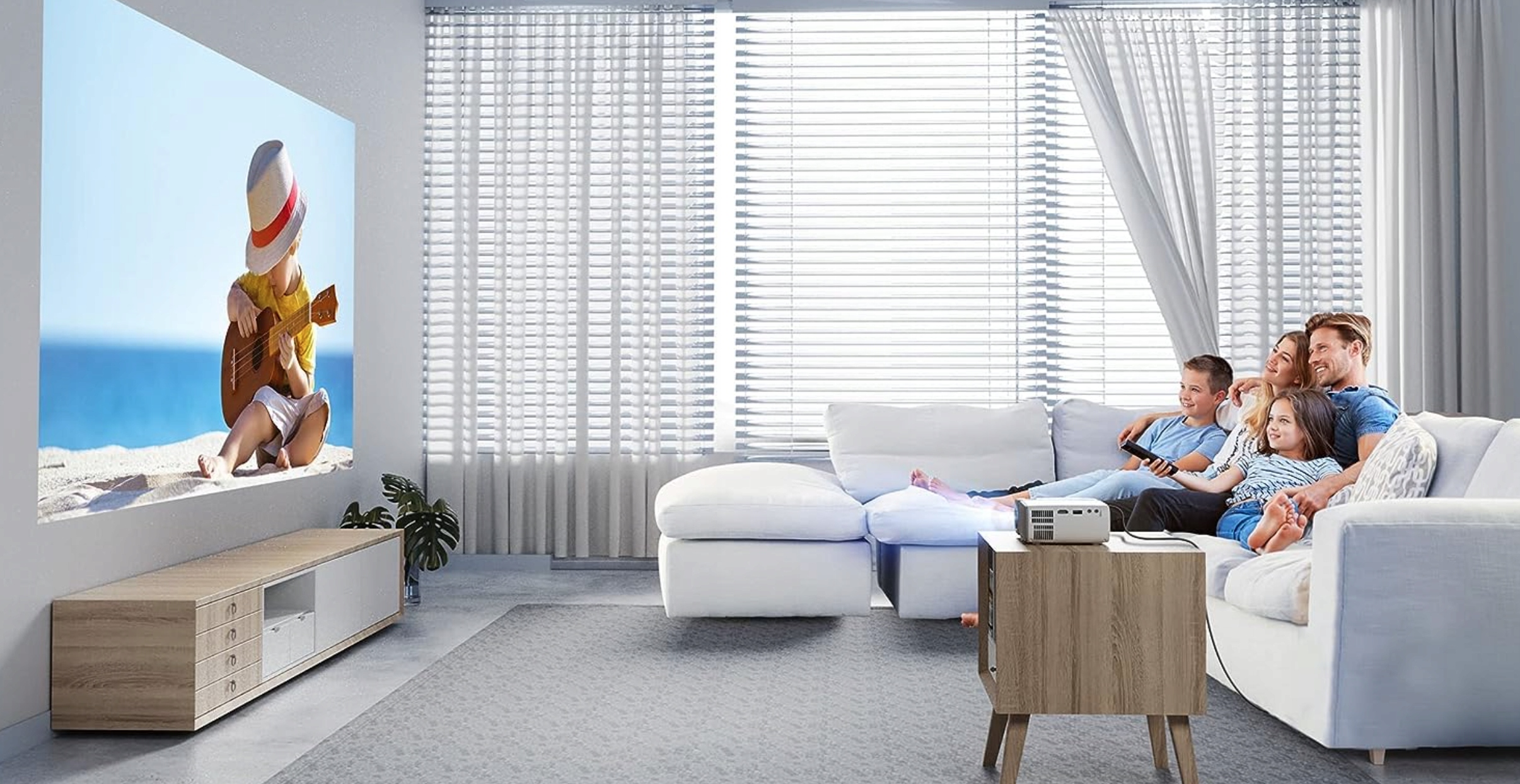 Дивіться улюблені фільми, серіали чи ігри на вражаючому екрані з діагоналлю до 160 дюймів! Відчуйте насичення емоції під час перегляду напружених сцен, насолоджуйтеся глибиною та деталізацією зображення завдяки високій роздільній здатності Full HD 1920x1080 пікселів та занурюйтесь у винятковуякість звуку.