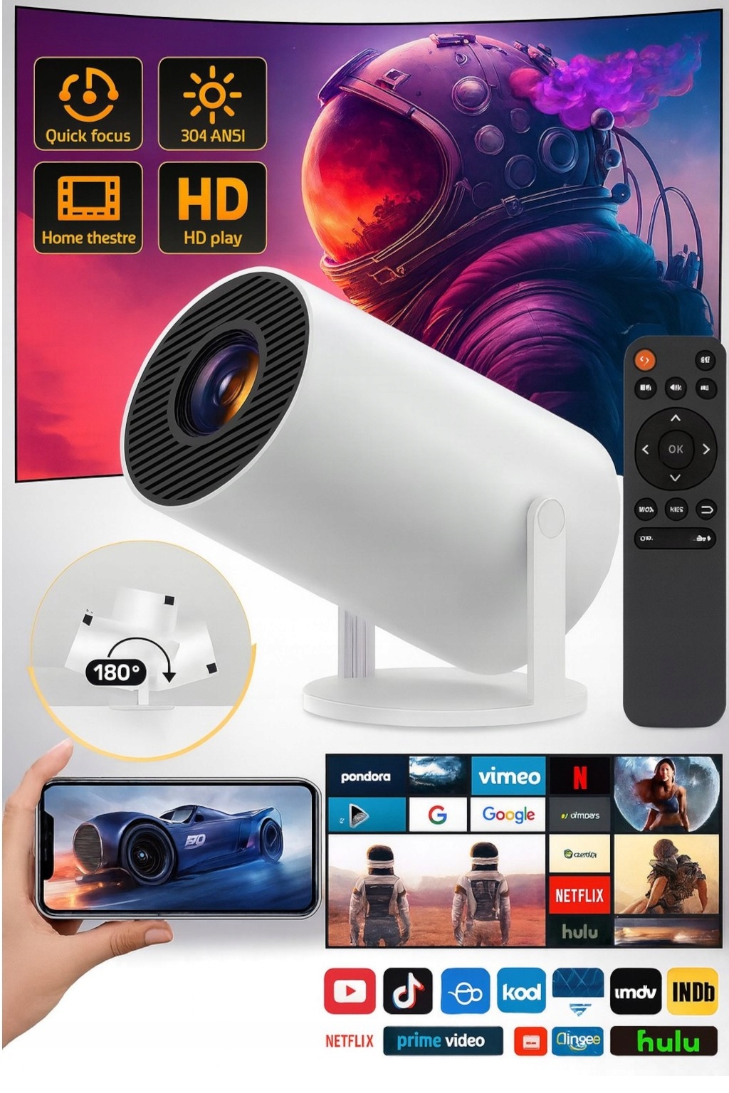 Відкрийте для себе сучасний спосіб домашніх розваг — компактний інтелектуальний проектор з Android, який поєднує в собі зручність використання з доступом до ваших улюблених програм і вмісту. Завдяки підключенню Wi-Fi і вбудованій операційній системі ви отримуєте незалежність і повну мобільність - без кабелів, без обмежень.