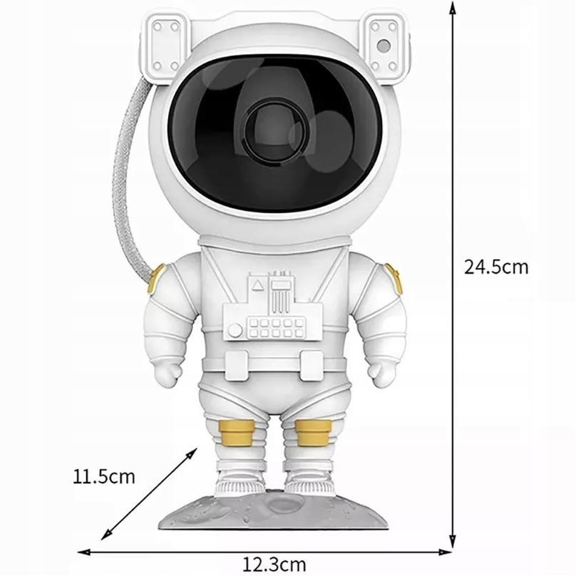 Цей простий у використанні та сучасний зірковий проектор ідеально підходить як пристрій для створення чудової атмосфери під час повсякденних занять чи ігор, або навіть для того, щоб приспати дитину, створюючи красиву галактичну туманність, яку випускає астронавт у кімнаті. . Це ідеальний спосіб урізноманітнити дитячу гру. Він також чудово підійде для вечірки на день народження, свята, Хеллоуїн та інші урочистості, а також дуже добре впишеться в звичайні повсякденні ситуації.