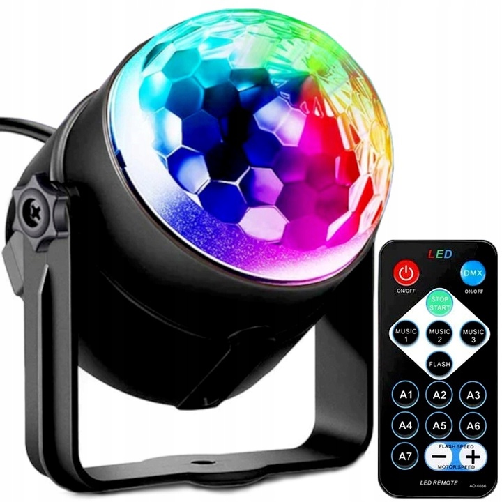 Після включення світлодіодна дискотечна куля починає відтворювати свою програму автоматичного освітлення, яка порадує всіх - її видно як на стінах кімнати, так і на стелі