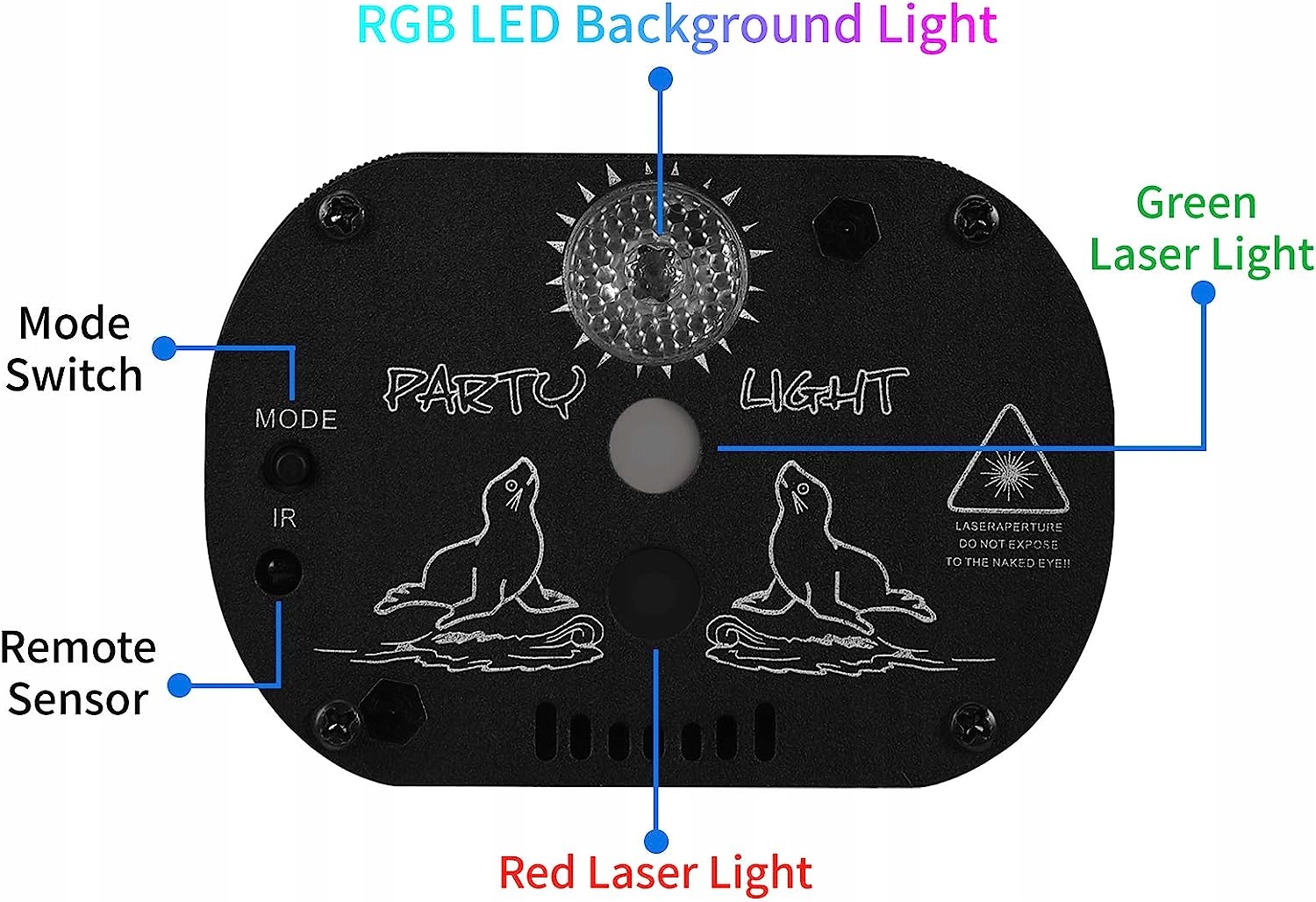 【 Нещодавно вдосконалені 3D-візуальні ефекти 】Освітлення для вечірок використовує 3D-ефекти, 240 різних проекційних ефектів – це краї та 7-кольоровий світлодіодний фон (червоний, зелений, синій, червоний, зелений, червоний і синій), синьо-зелений, червоно-зелений-синій) і 2 комбінації променів (червоний, зелений), комбінація мультиефектів для створення більш жвава та динамічна атмосфера.