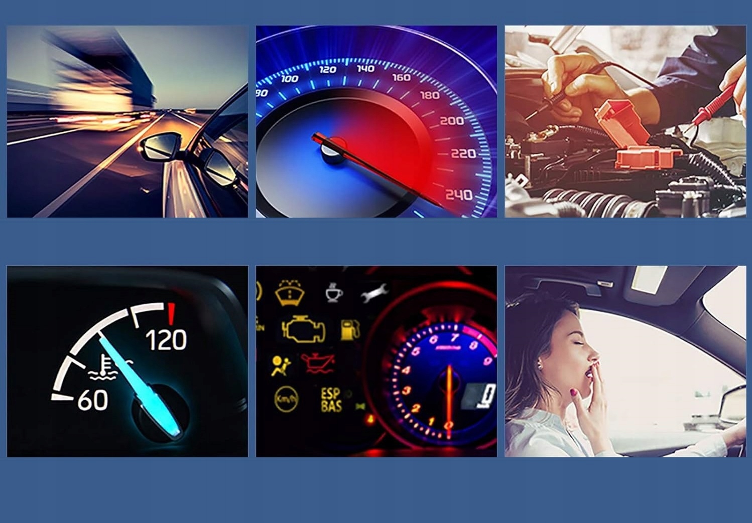 - Функція OBD може відображати швидкість, оберти на хвилину, температуру води, напругу, витрату палива, дистанцію за одну поїздку, час за одну поїздку, час прискорення на 100 км, висоту над рівнем моря, напрямок руху та усунення помилок.