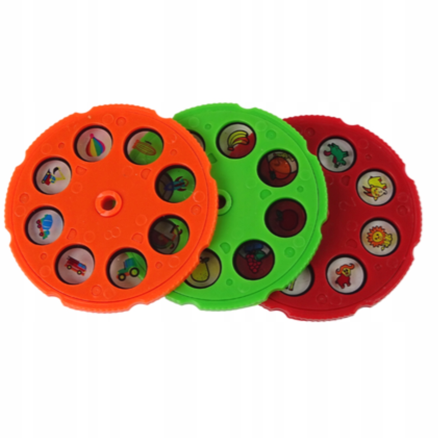 - Після вмикання проектора загоряється світло, а після вставлення диска відображаються слайди. У нас є цілих 24 чудові барвисті малюнки, як-от тварини, транспортні засоби, овочі та фрукти.