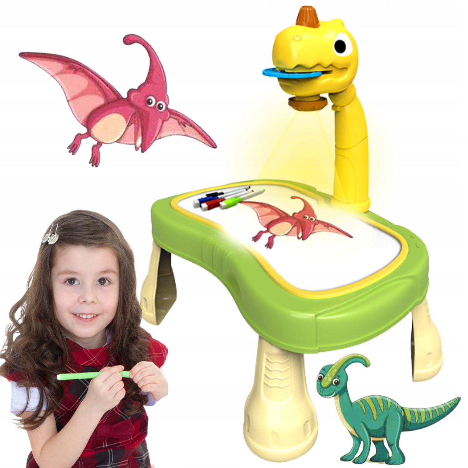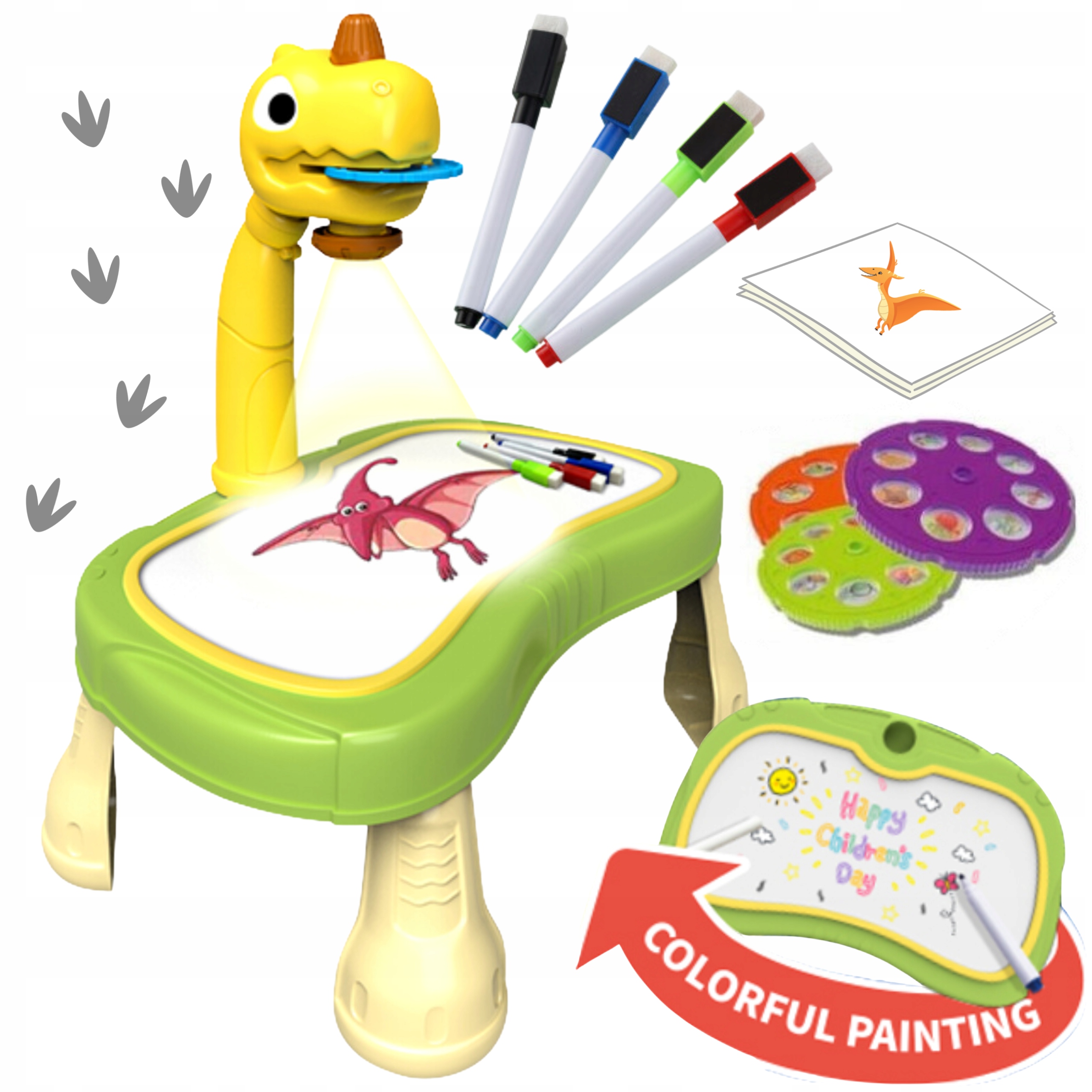 ✅ Ця унікальна таблиця має вбудований проектор , що дозволяє проектувати різні зображення на поверхні таблиці. динозавр має зручний перемикач , який використовується для легкого запалення, що створить правильну атмосферу для творчого дослідження.
