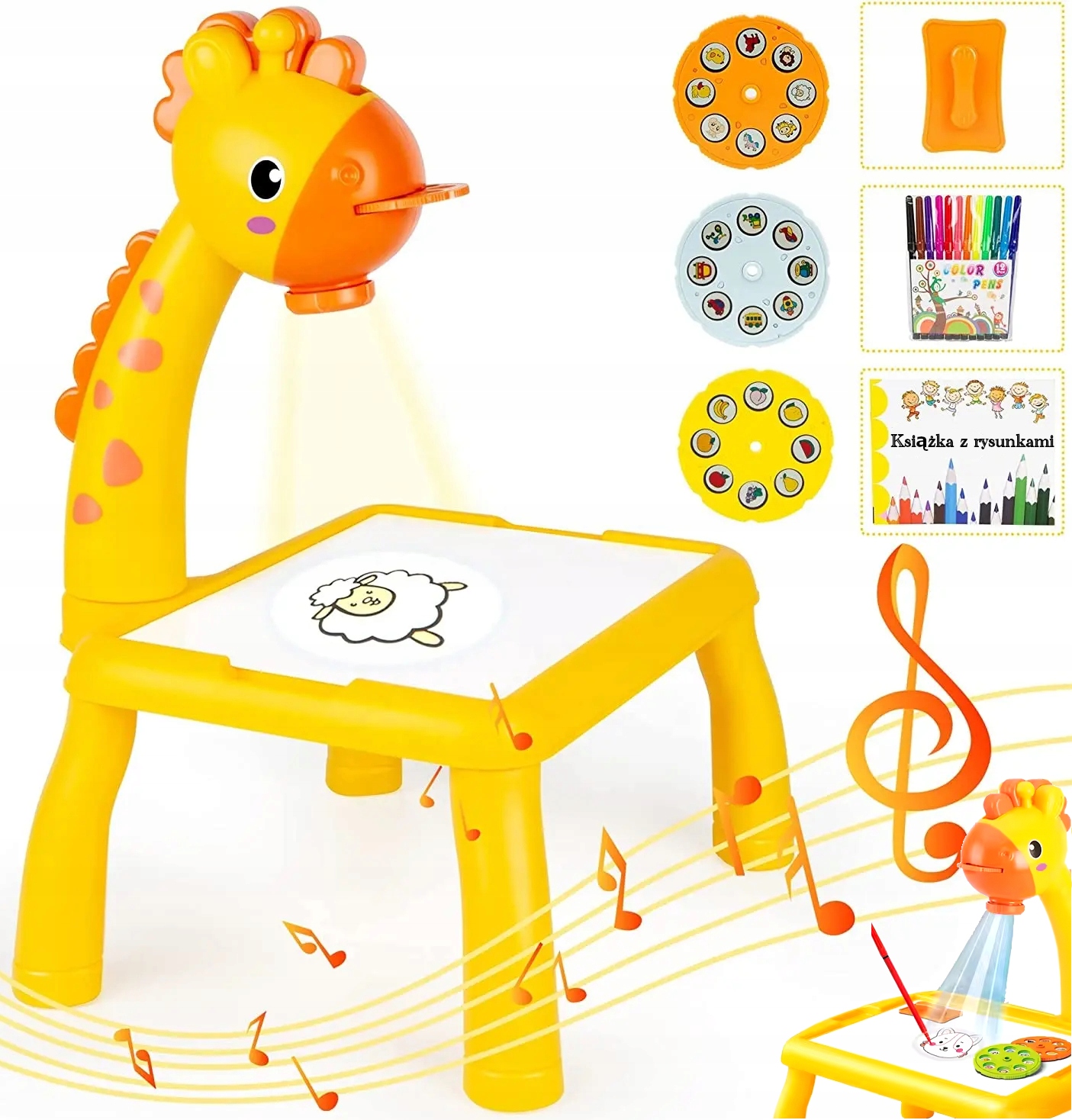 Заохочуйте свою дитину до розвитку творчості та ручних навичок за допомогою цього барвистого навчального столу з проектором у формі жирафа!