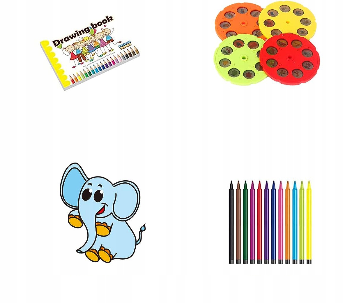 Набір містить 4 диски з 32 різними картинками: від фруктів і транспортних засобів до сафарі і морських тварин. Це чудова база для навчання, що дозволяє дітям потренуватися малювати лінії та фігури за певними шаблонами.