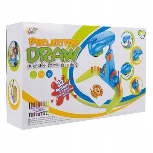 Проектор — це пропозиція для дитини, яка любить малювати та малювати, але тільки починає свою творчу пригоду. Проектор з 32 малюнками напевно зацікавить кожного маленького художника. Проектор регулюється по висоті, тому ви можете використовувати його на аркуші паперу, на столі або проектувати зображення на стіну. Його можна повністю скласти і зберігати в ящику. У складеному вигляді займає мало місця. Проектор дуже гарно зроблений, тому грати буде дуже весело.