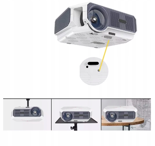 Кріплення за допомогоюгвинтів до стелі або штатива дозволяє вільно формувати місце, де використовуватиметься проектор, максимізація його можливостей як вдома, так і в офісі. Крім того, ви можете розмістити його на штативі.