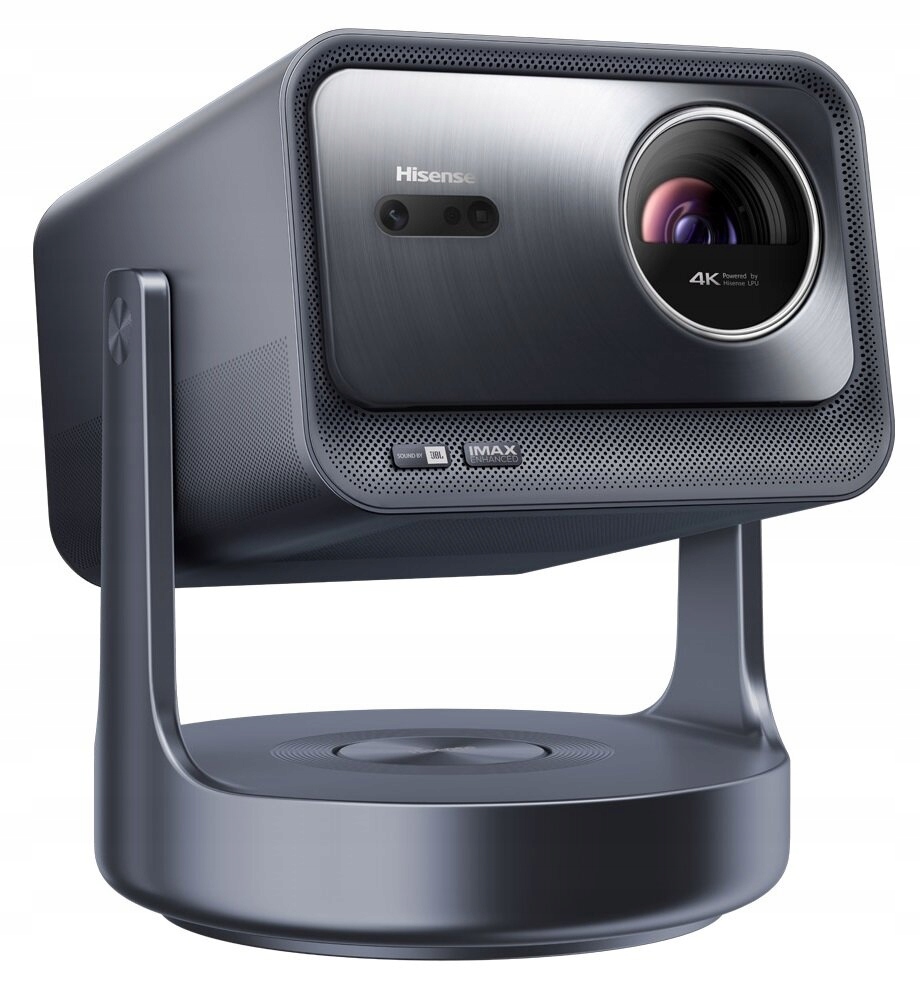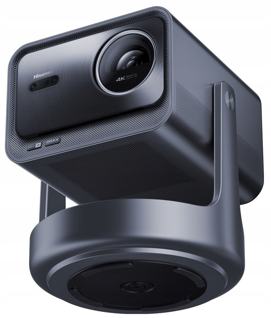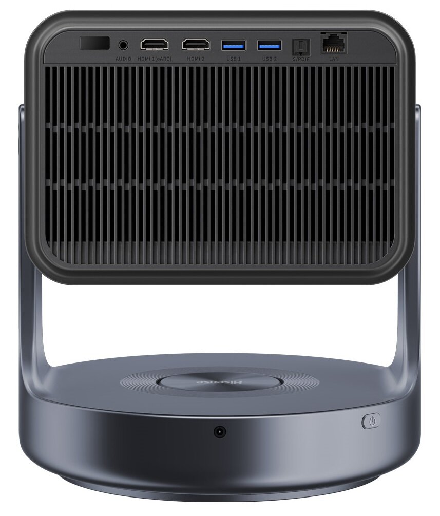 hisense c2 Ultra відрізняється дизайном способу життя, який поєднує продуктивність проекції з естетикою. Завдяки регульованій основі, що пропонує обертання 360 ° та нахил вперед або назад, вона гармонійно вписується в будь -яке оточення. Його твердий і елегантний металевий корпус лежить на круглої основи, яка приховує сабвуфер для зануреного звуку.