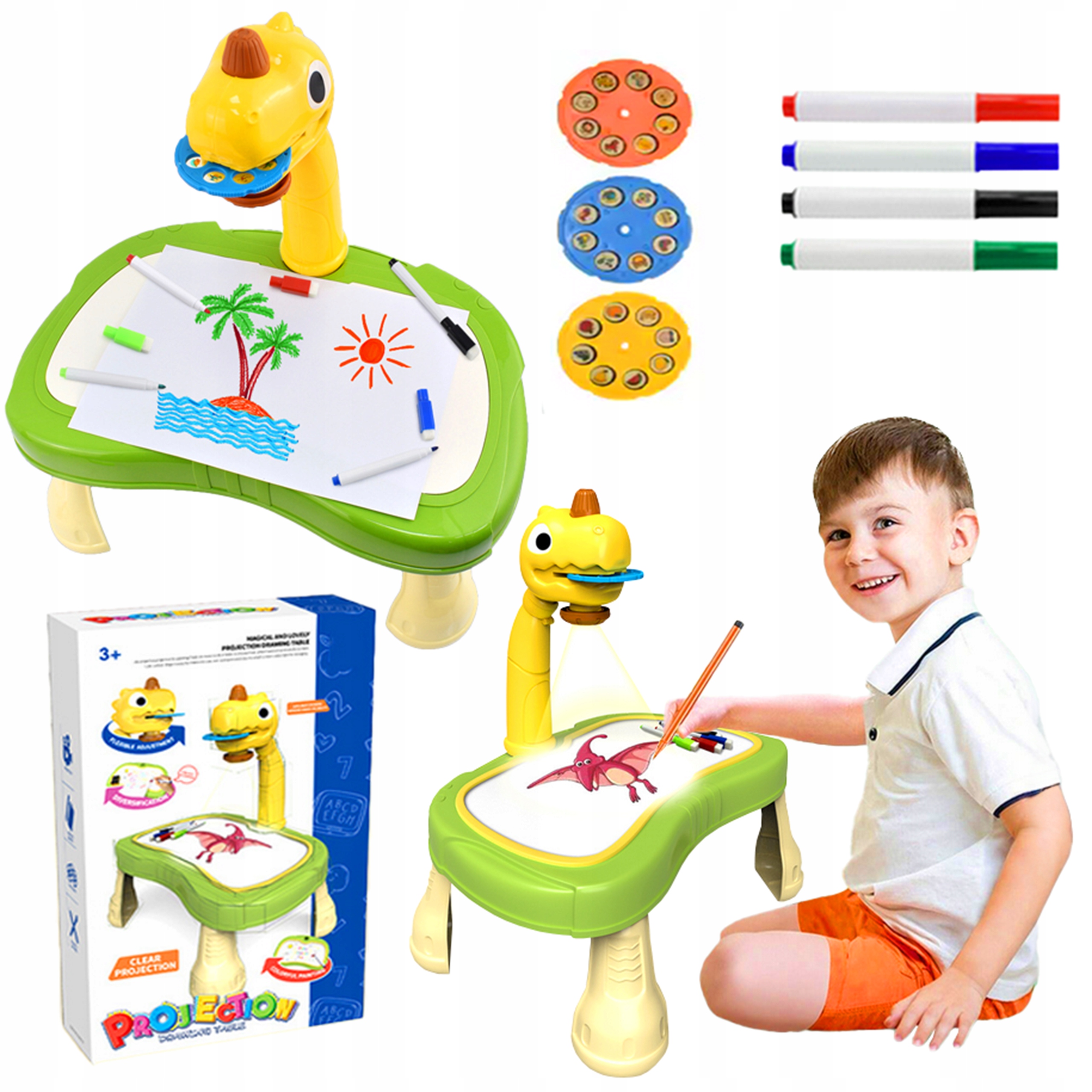 ⭐ Креативна забава з мотивом динозавра! 4 Цей унікальний стіл з проектором, укладеним динозавром, є ідеальним інструментом, який поєднує в собі розваги з наукою , розвиваючи мистецькі та моторичні навички вашого малюка.