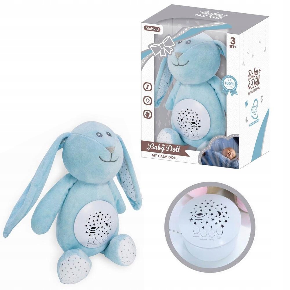 Лампа проектора - Зайчик. Делікатні музичні звуки. Барвистий проектор, який відображає зірки на стінах або стелі. Механізм можна видалити та промивати опудала тварину. Розміри упаковки: 26 х 19 х 14 см