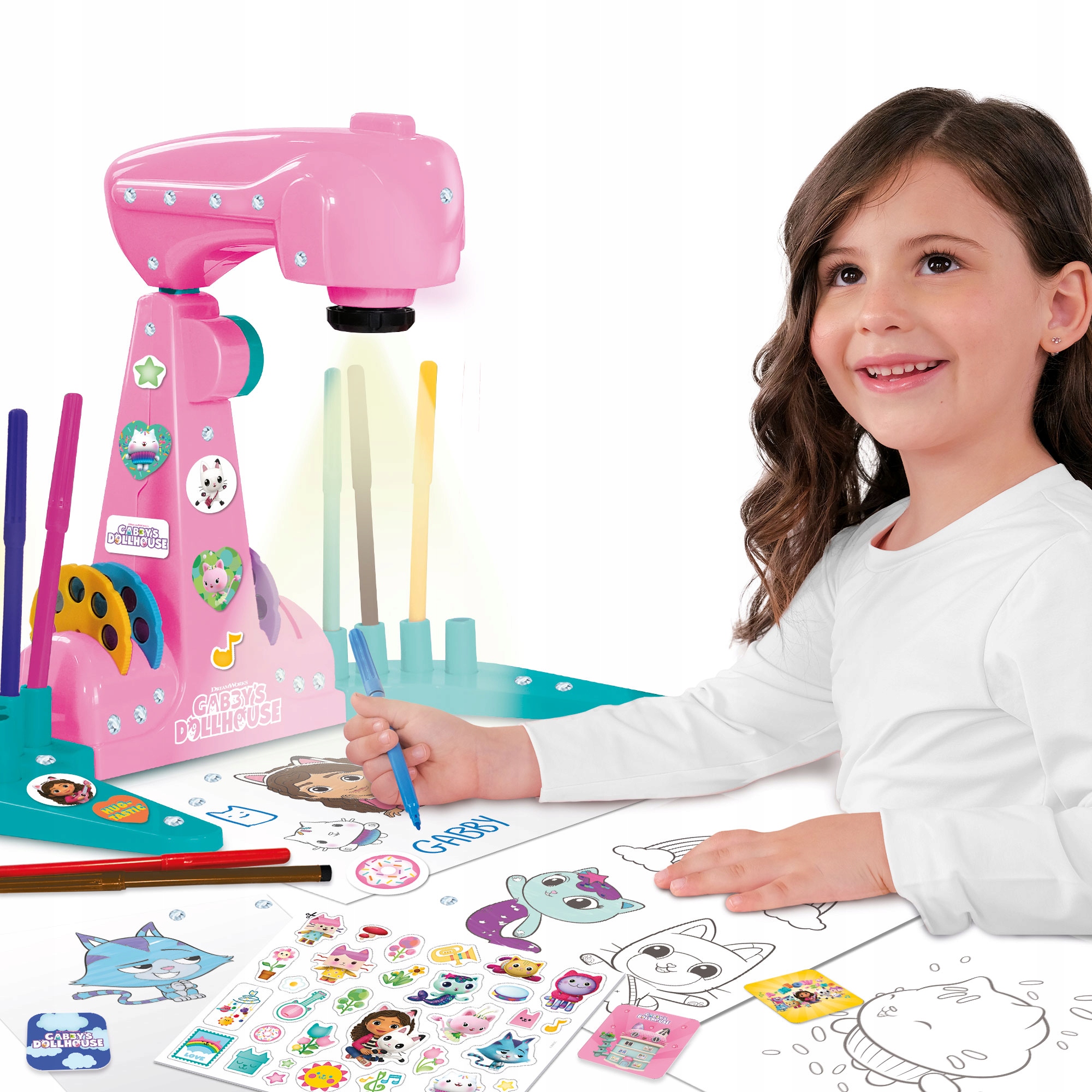 Розважтеся з чарівним проектором Gabi Cat House у стилі Будиночок котів, завдяки якому ви навчитеся малювати своїх улюблених казкових героїв у надзвичайно креативний спосіб. Просто увімкніть світлодіодний проектор, щоб відобразити вибране зображення на звичайному аркуші паперу, щоб ви могли легко намалювати контури. Завдяки цьому діти можуть створювати багато малюнків для розфарбовування, що розвиває їхні ручні навички та уяву. У набір також входять чудові аксесуари, такі як чотири диски з різними малюнками для малювання, кольорові ручки, наклейки, ромби та 16 білих карток для малювання для дітей. Проектор — це чудовий спосіб провести час разом із братами та сестрами чи друзями, а його використання — чудова можливість навчатися через гру, що залучає дітей до творчої діяльності та дозволяє їм розвивати свої художні навички.