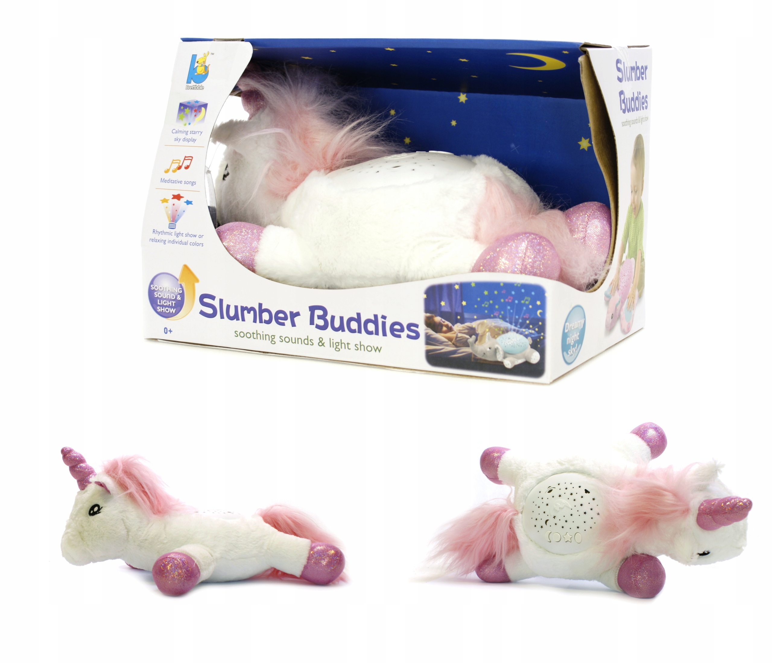 М'який плюшевий єдиноріг стане ідеальним супутником для сну для дитини будь-якого віку. М'яка іграшка подарує вашому малюкові відчуття безпеки та комфорту. Заспокійливі мелодії та звуки заколисуть малюка, а світяться зірочки та крапки створять зоряне небо на стелі та стінах. Різнокольорові вогники, що освітлюють кімнату, допоможуть дитині заспокоїтися та розслабитися перед сном.
