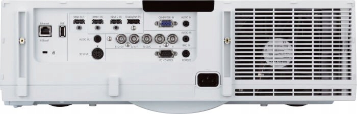 Особливі функції - Digital 3D Reform™; інтерфейс 4K; Маяк AMX; Вбудований дисплей/мультиекранний розгалужувач сигналу; CQP (Cinema Quality Picture Processing) для найкращої якості зображення; Crestron RoomView; стандартне моделювання DICOM; Функція прямого відключення; Функція Edge Blending (Build In); Вільно обертається; Повна підтримка 3D в HDMI; Геометрична корекція; HDBaseT; Корекція трапецеідальних спотворень (H=±40°, V=±40°); LAN; Зміщення об’єктива (по вертикалі +0,5 макс./-0,1 макс., по горизонталі ± 0,3 макс.); Режим компенсації кольорів для мультиекранного налаштування; NaViSetAdministrator 2 ; екранне меню на 27 мовах; Додатковий логотип користувача; PIP/Side by Side, HDMI - вхід; PJ LINK; Захист паролем; Установка в портретну орієнтацію; управління через RS232; StackingFunction; Функція годинника; Функція віртуального дистанційного керування; Ручне налаштування компенсації кольору стіни; Енергоспоживання в режимі очікування нижче 0,16 Вт; Інтелектуальна система управління енергією