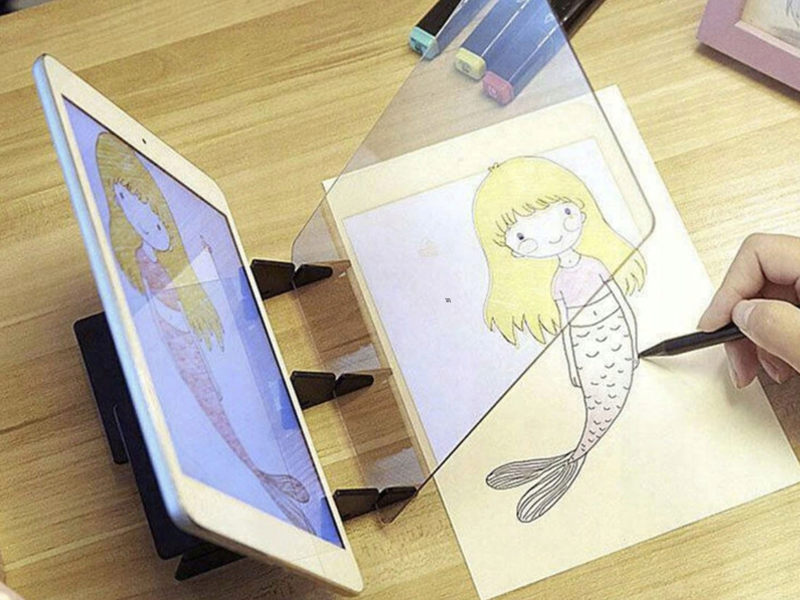 Оригінальний гаджет для всіх, хто любить творчо творити. Використовуйте цю зручну підставку, щоб легко скопіювати зображення зі свого телефону чи планшета на папір. Вам не потрібна електрика, батарейки, розетка чи лампа!