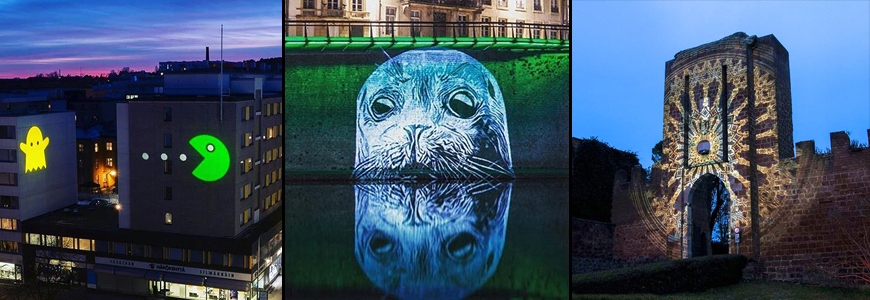 Ілюмінаційний проектор використовується для відображення зображень на фасадах будівель, вони можуть бути статичними або рухомими. Найчастіше проектор використовують під час свят, прикрашаючи фасади будівель світловими декораціями у вигляді сніжинок або зірок. За допомогою проектора ми можемо відображати все, від вищезгаданих сніжинок до логотипів або написів компаній, у різних кольорах і розмірах. Для цього нам потрібні плитки гобо з яких ми виводимо зображення, плитки виготовляються на замовлення замовника, для цього необхідно надіслати нам проект.