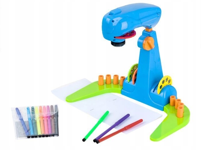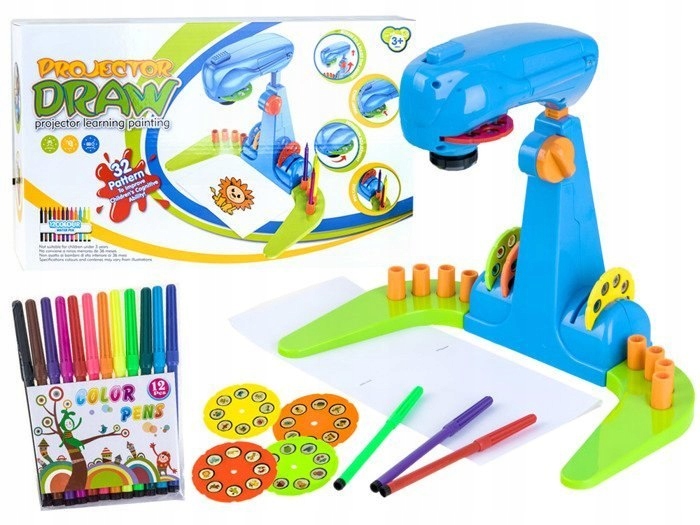 Проектор - це пропозиція для дитини, яка любить малювати, малювати. Проектор з 4 наборами конструкцій для відображення на аркуші паперу чи стіни, ймовірно, зацікавить кожного маленького художника. Проектор має регульовану висоту, тому ви можете використовувати його на самій картці та відображати зображення на стіні. Його можна покласти повністю і приховувати в ящику, він займає невелике місце після складання. Використання проектора є широким, ви можете відображати зображення типу (тварин, транспортних засобів, фруктів) на аркуші паперу, столу, а також на стіні ввечері. Проектор дуже добре зроблений, під час гри дуже весело. Чудова забава забезпечена.