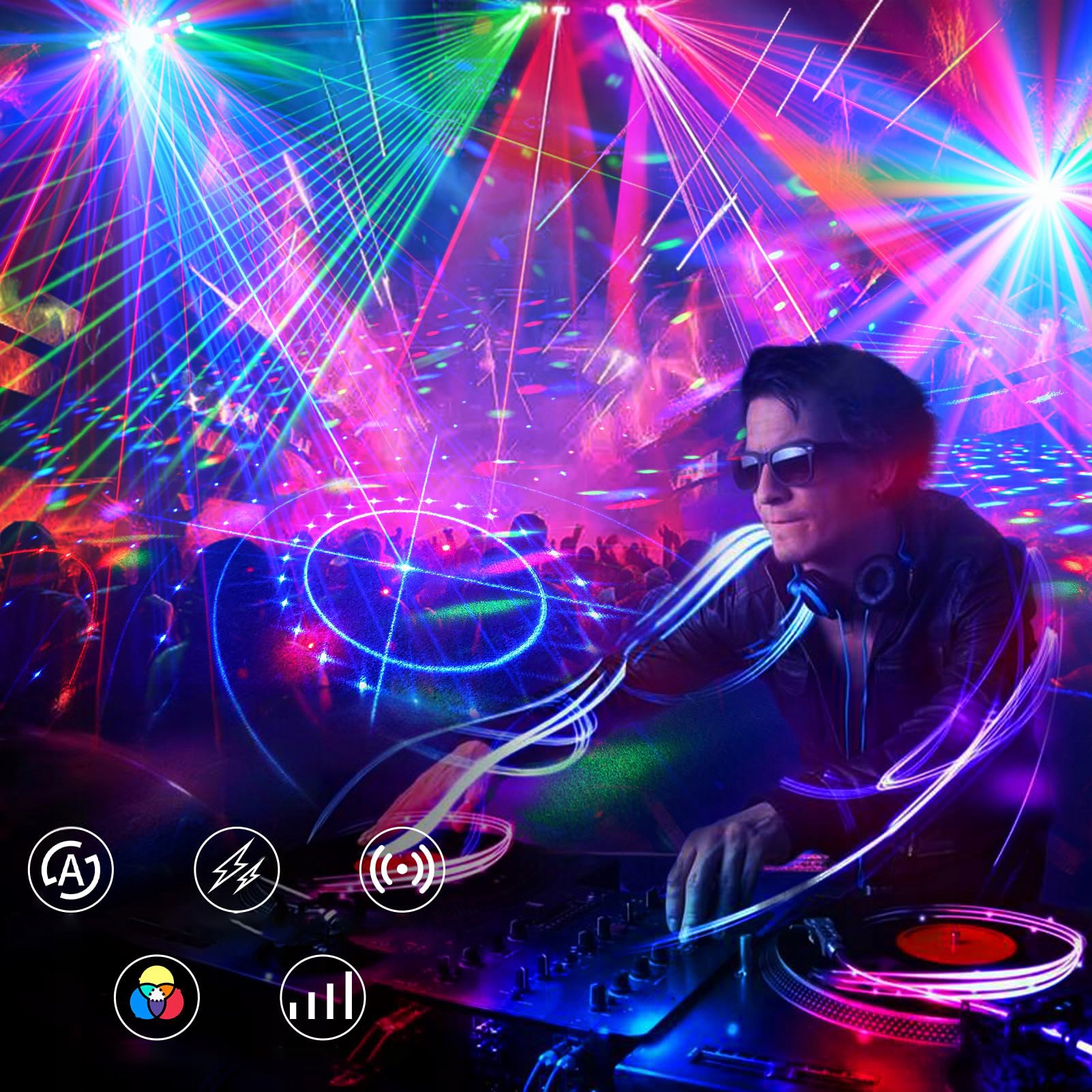 6. Ефект освітлення: п’ять в одному, проекція 96 візерунків + фарбування світлодіодної лампи Par + фіолетове ультрафіолетове світло + світловий ефект Magic Ball + спалах золотої частоти