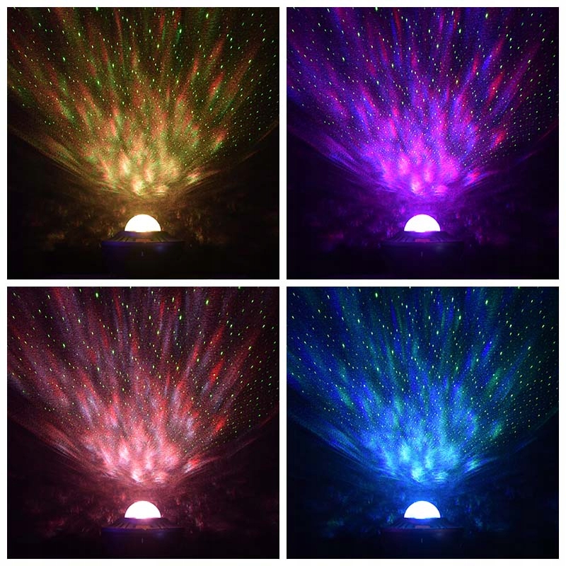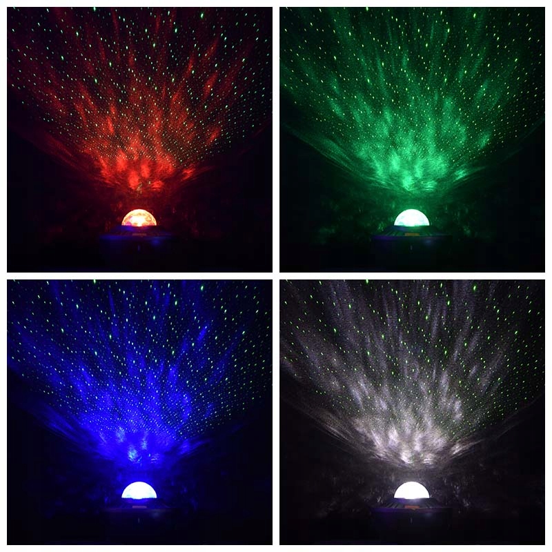 Саме так! ✅ Ви можете увімкнути його та Вимкніть LED і лазерні діоди, щоб вони працювали незалежно. Ви можете змінювати кольори хмар, що плавають у небі (RGBW), створювати комбінації кольорів, змінювати швидкість руху хмар (S+/ S-), виберіть один із двох режимів згасання кольору (FADE 1/2), а також збільшуйте та зменшуйте яскравість усього освітлення. Ви також можете керувати динаміком за допомогою пульта дистанційного керування. Якщо у вас є музика на накопичувачі, ви можете легко відтворювати її, переходити між піснями та змінювати гучність.