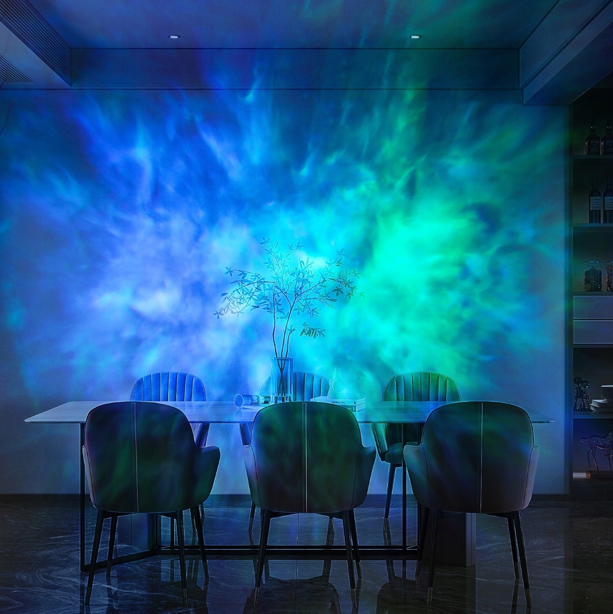 ✨ Проектор, розміщений у кутку кімнати під відповідним кутом, покриє всю поверхню стіни та стеля!