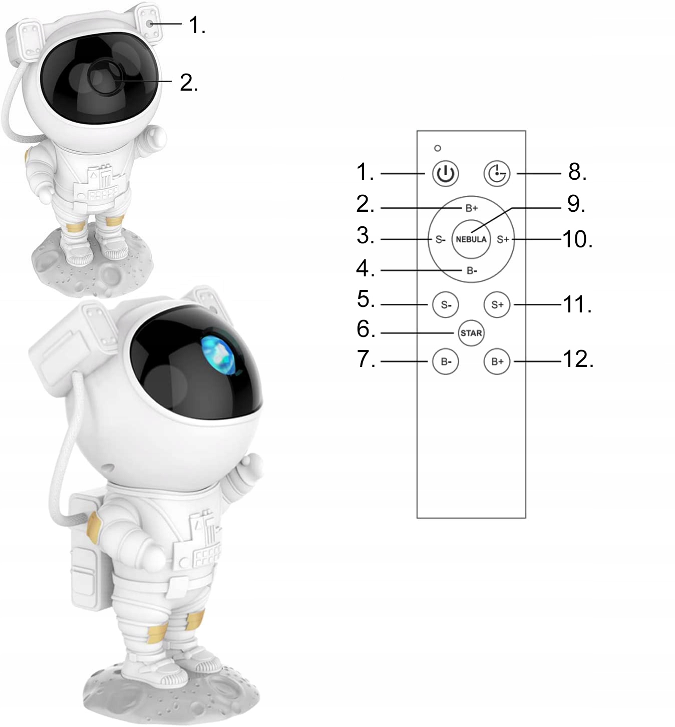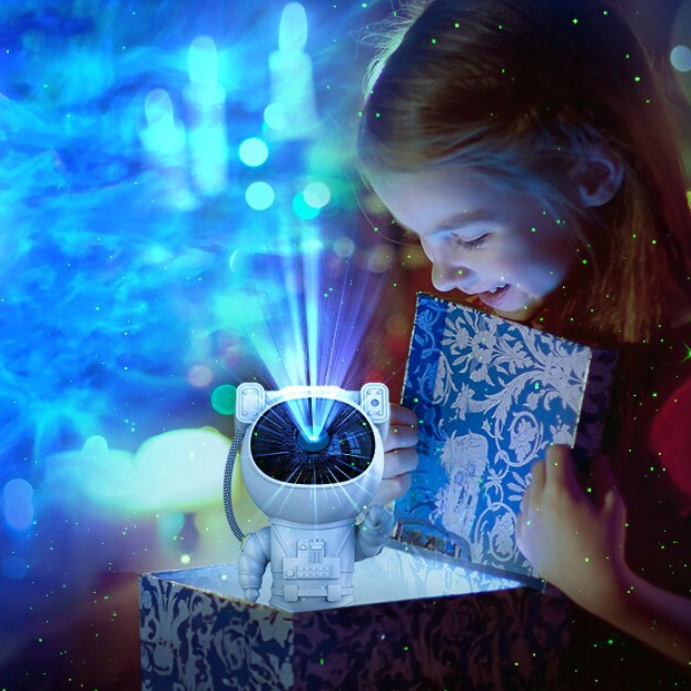 - Завдяки обертовій голові астронавта ви можете обертати проектор так, що він освітлює кожну стіну та стелю навколо вас;