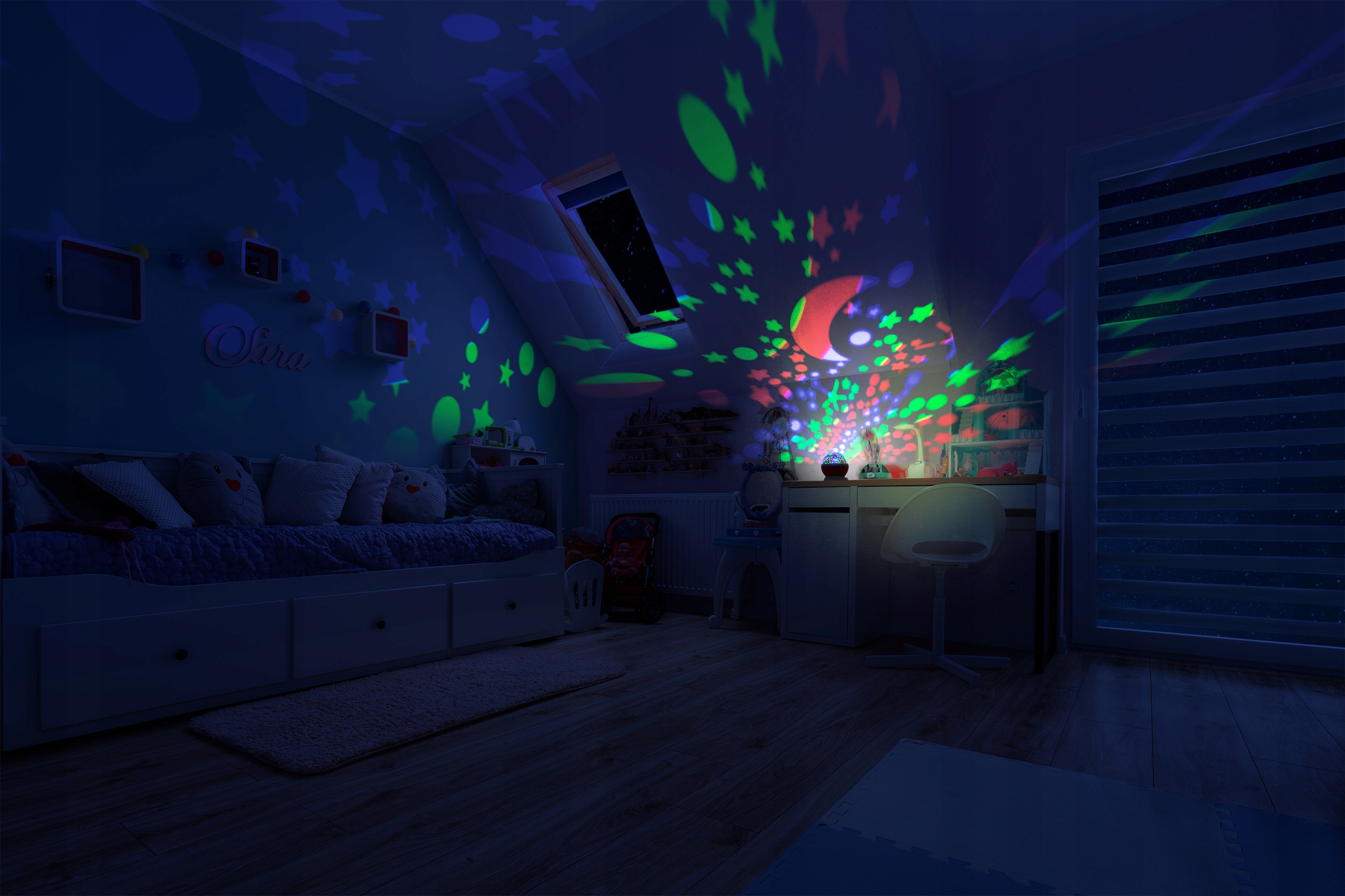 Барвистий зоряний світ освітить кімнату, а також допоможе вашій дитині заспокоїтися та розслабитися перед сном.