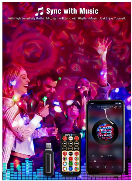 Новітній режим музичного ритму дозволяє вогникам танцювати в ритмі музики, створюючи ще прекрасніше світлове свято. Ви також можете використовувати пульт дистанційного керування, щоб регулювати швидкість світла та комбінацію світла для полегшення використання