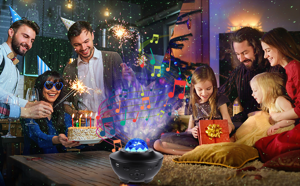 просто підключіть Bluetooth або відтворюйте музику із зовнішньої пам’яті через порт USB. Цей дитячий нічник має звукову конструкцію, а чудова проекція може блимати в ритмі музики або вашого голосу. Просто танцюйте в такт! Високоякісна музика та проекції зірок створюють романтичну та заспокійливу атмосферу на нічному небі.