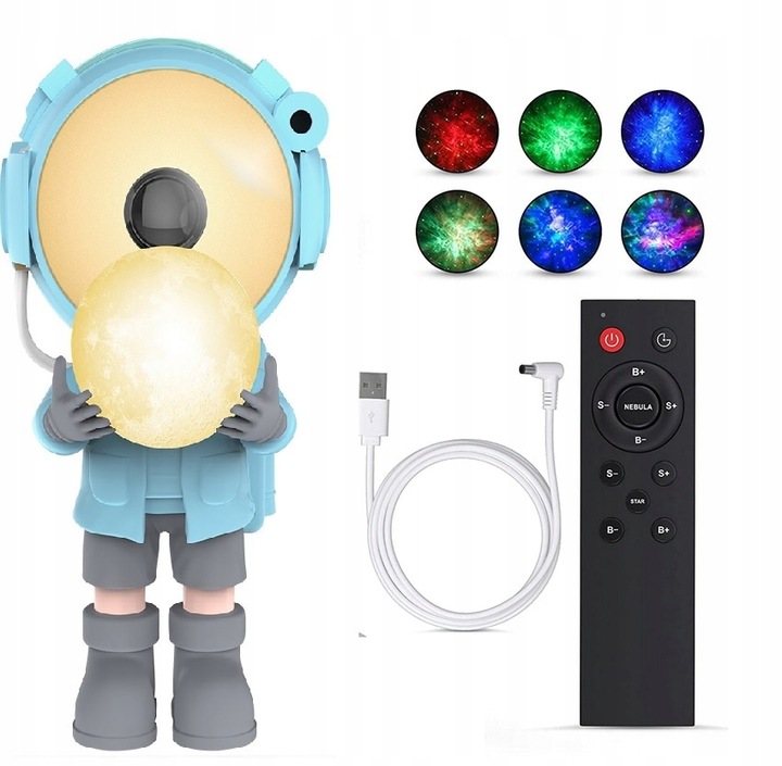 Зовнішній вигляд астронавта є новим і унікальним, він повторює тему зоряного неба та галактики та веде вас у дослідження величезного зоряного неба. Голова астронавта, яку можна обертати на 360° за допомогою магнітного тяжіння, дозволяє спроектувати туманність будь-куди без обмежень. Крім того, місячна основа астронавта знімна.