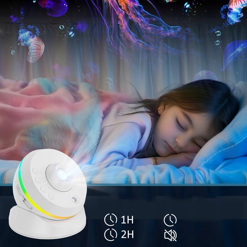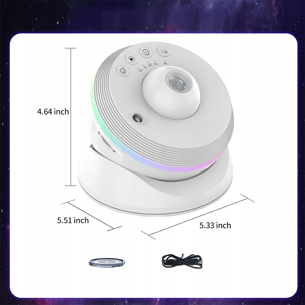 🥰【Безшумне обертання навколо центральної осі】Безшумний двигун обертається повільно, імітуючи рух зіркових шляхів, зі швидкістю 12 хвилин за оберт і максимальним рівнем шуму 30 децибел.