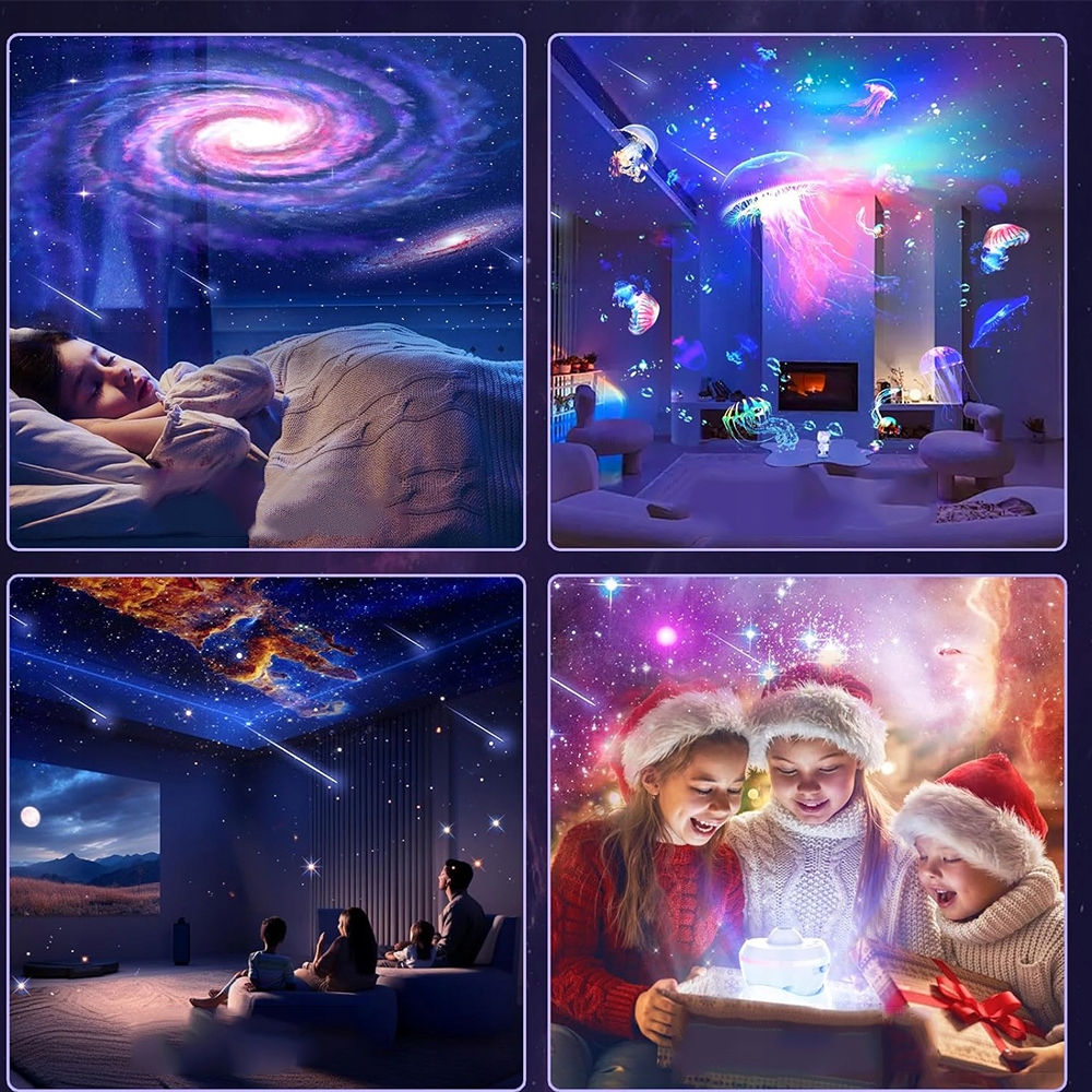 😜【Проектор Galaxy 13 в 1】Проектор Starry Sky оснащений сценою проекції Galaxy, яка перенесе вас в інший віртуальний світ, створюючи відчуття, що ви перебуваєте на зоряному небі, навіть якщо ви там насправді.