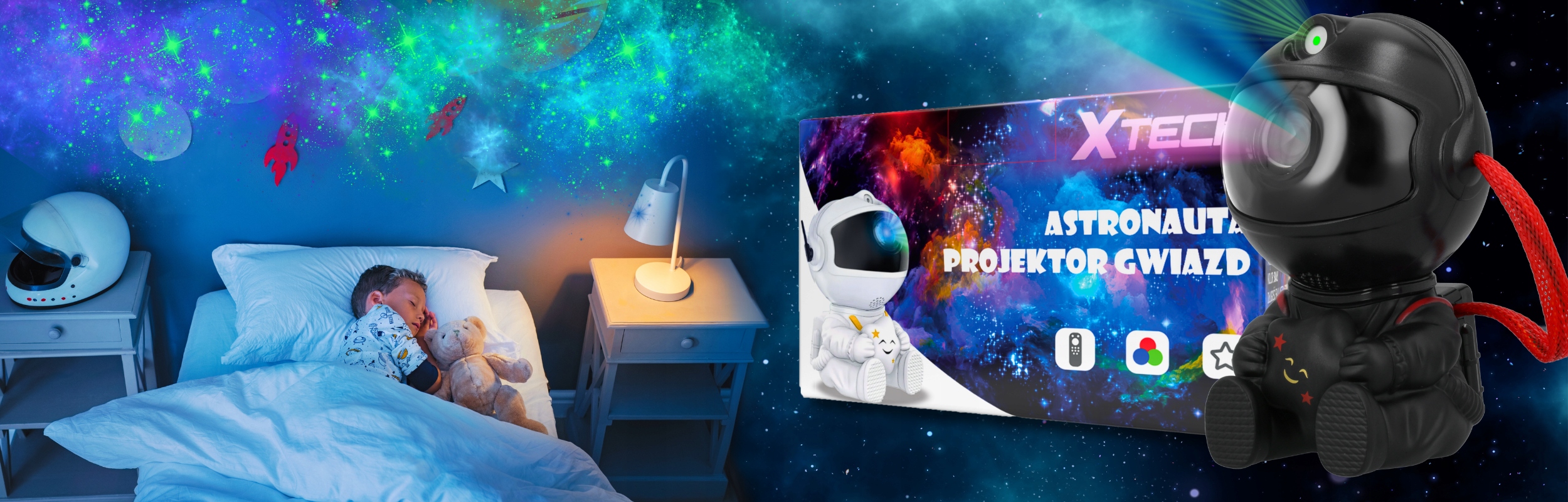 ПРОЕКТОР ЗІРКА АСТРОНАВТ НІЧНИК ДІТЯЧИЙ XTECH ЧОРНИЙ