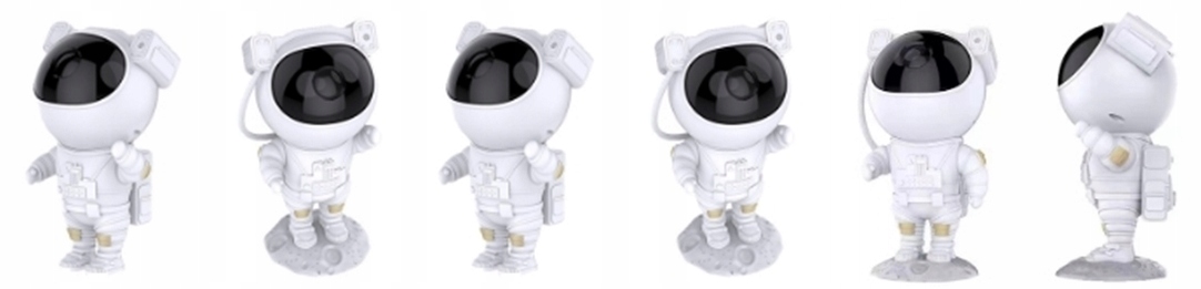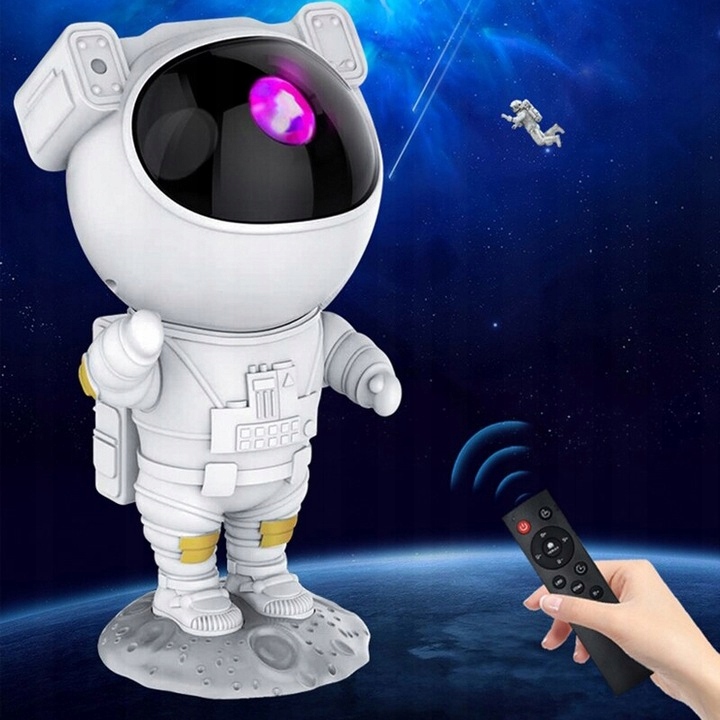- Завдяки обертовій голові астронавта ви можете обертати проектор так, що він освітлює кожну стіну та стелю навколо вас;