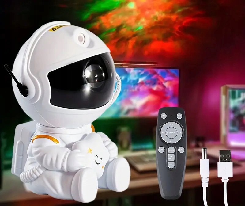 - Нічник із проектором зірок астронавтів містить багато видів туманностей, які супроводжуються мерехтливими зеленими зірками.
