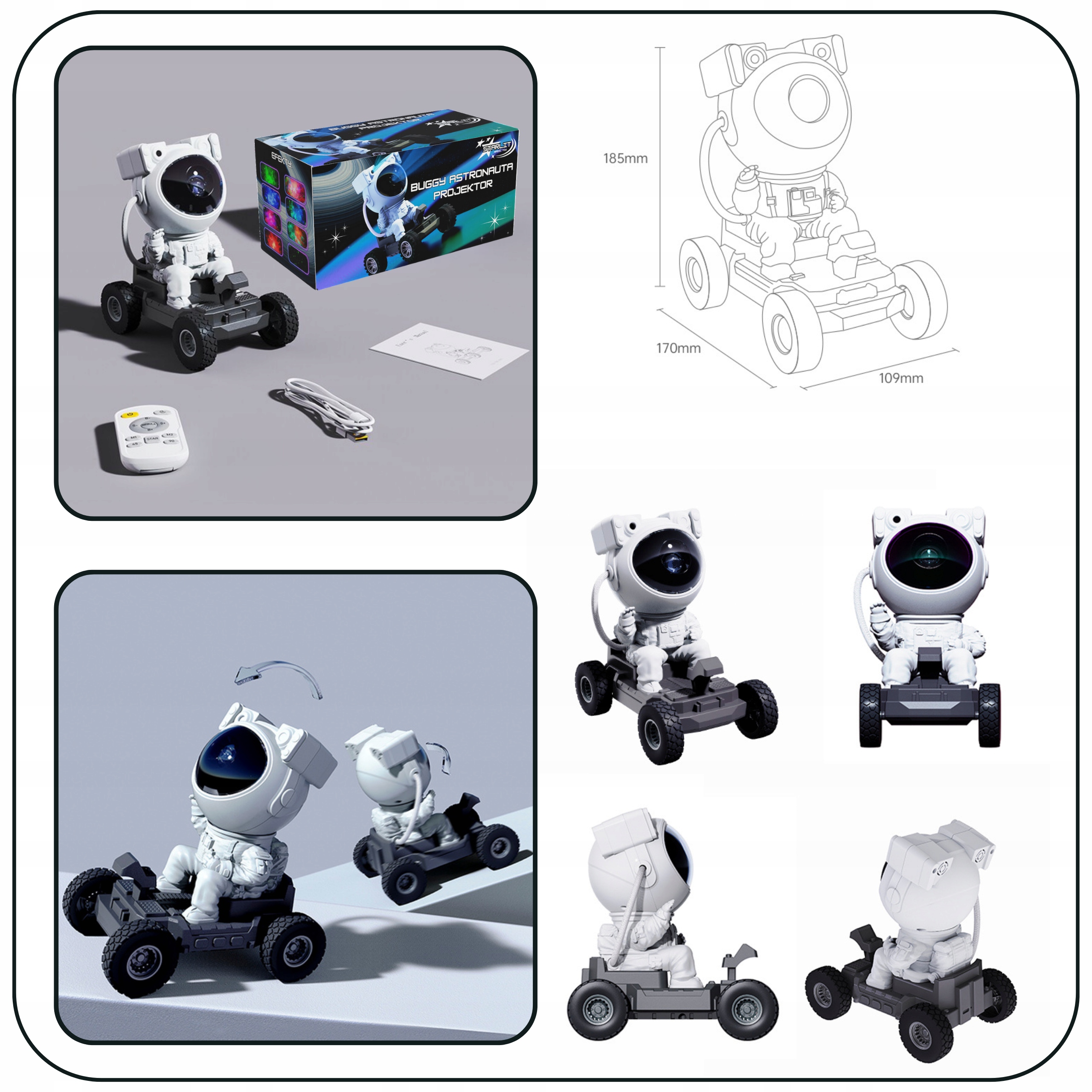 Проектор зірок у формі космонавта, що сидить на машині, - це не лише ефективна прикраса , але й функціональний гаджет , який вводить радість та взаємодію з повсякденними моментами. Завдяки можливості змінити його положення, ви можете створити різноманітні візуальні ефекти , ідеально підходячи до настрою.