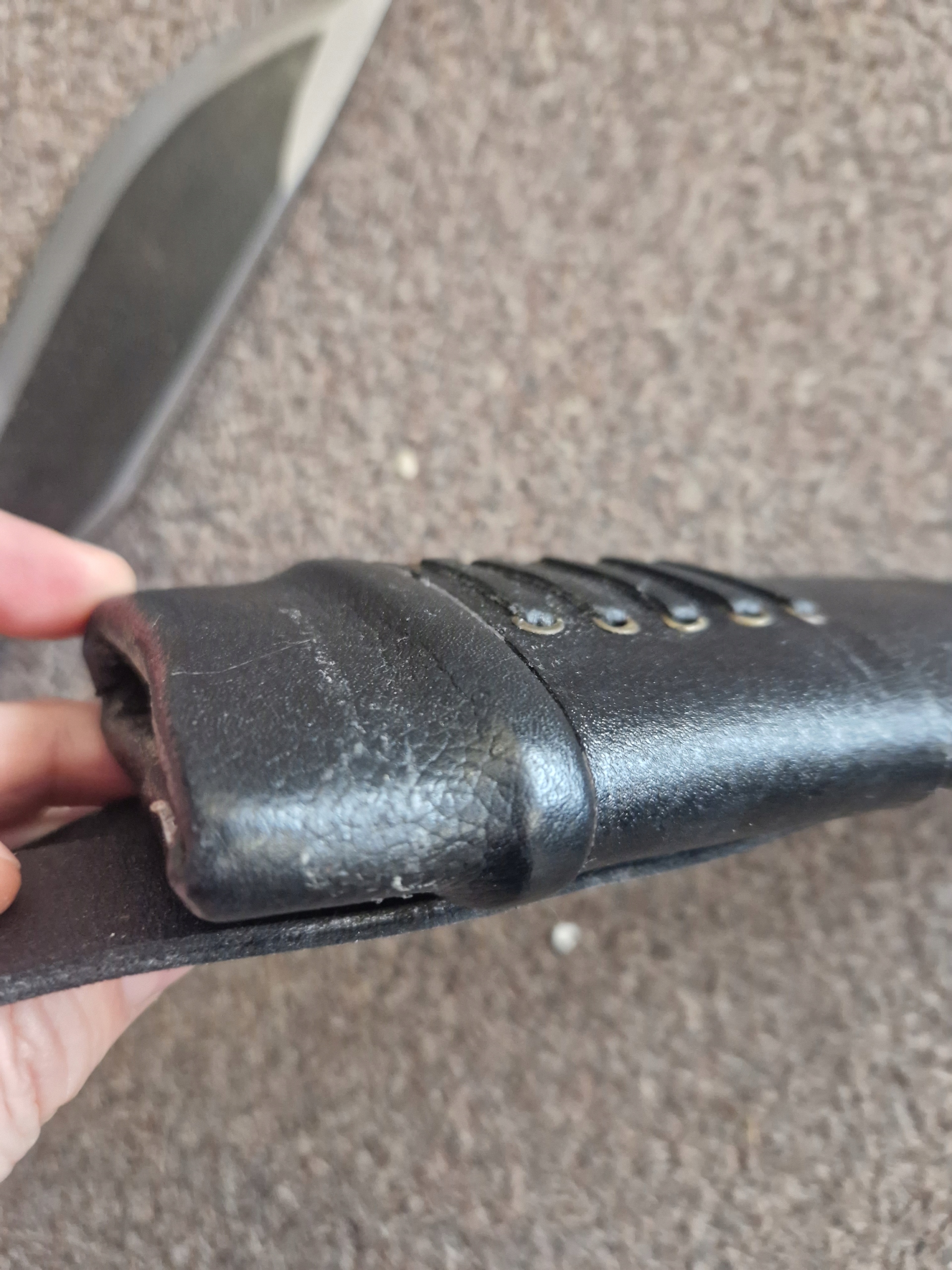 Зовнішній вигляд шкіри на піхвах може дещо відрізнятися за кольором і відтінком від того, що можна побачити на фото. Можливі потертості або зміна кольору шкіри піхви, що є нормальним явищем.
