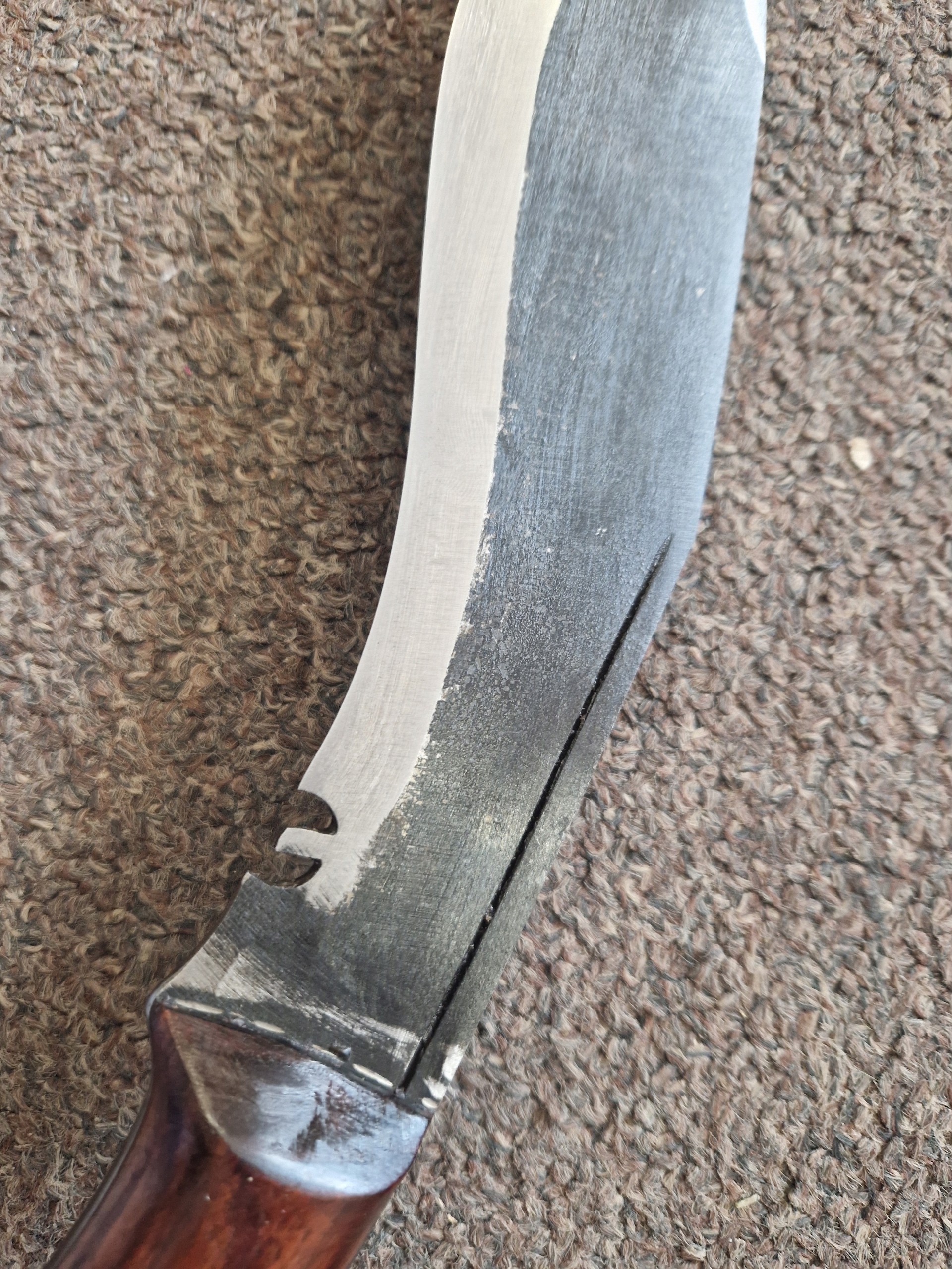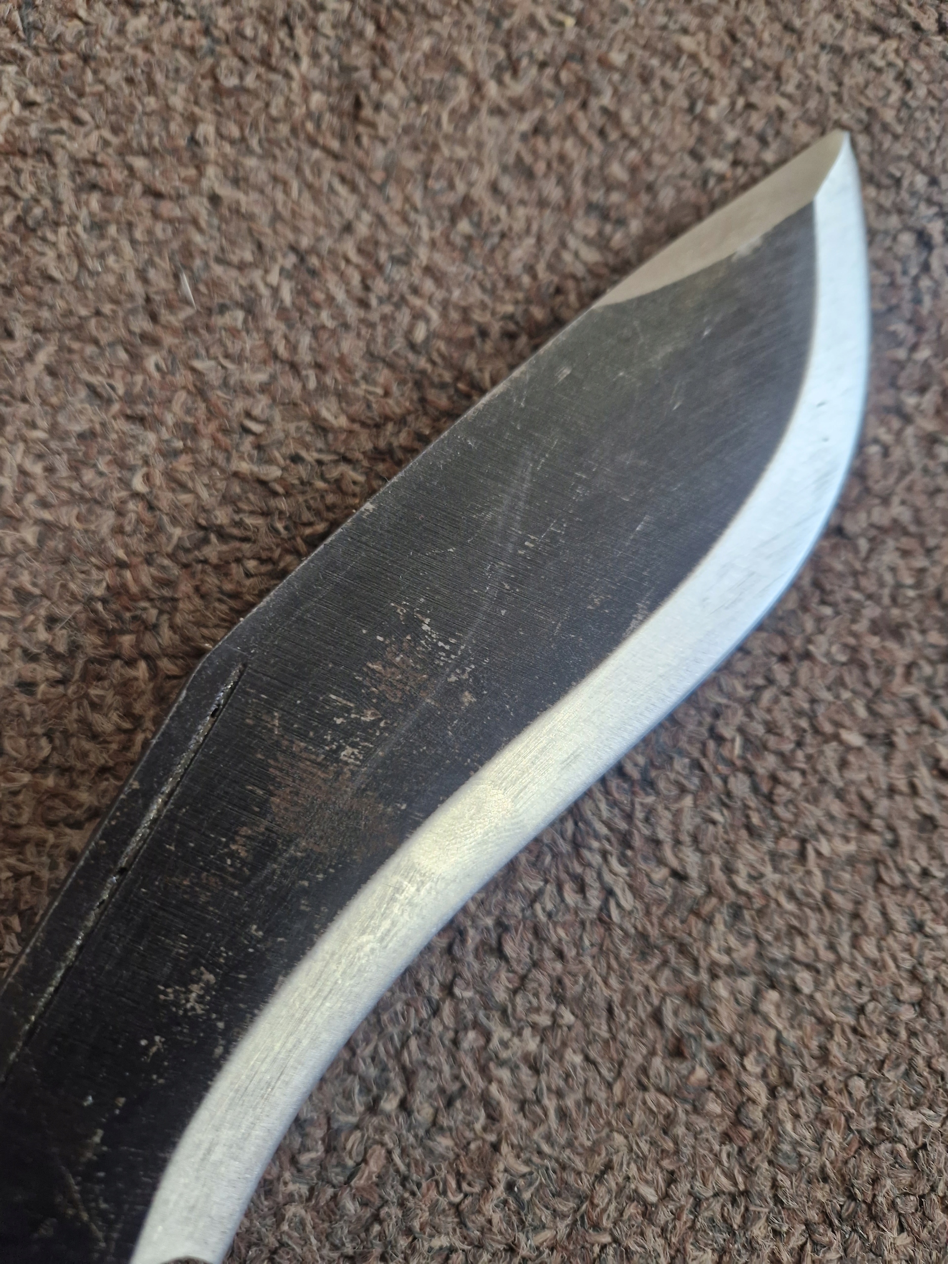 Лезо: високовуглецева сталь 5160, кована та загартований вручну, потребує догляду, частина леза темного кольору