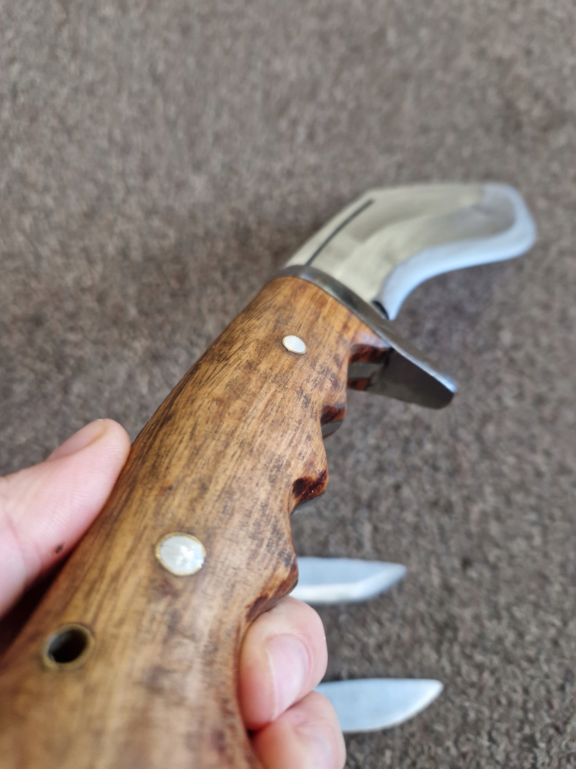 Рукоятка з палісандровою обшивкою, склеєна традиційним непальським клеєм Laha та латунню