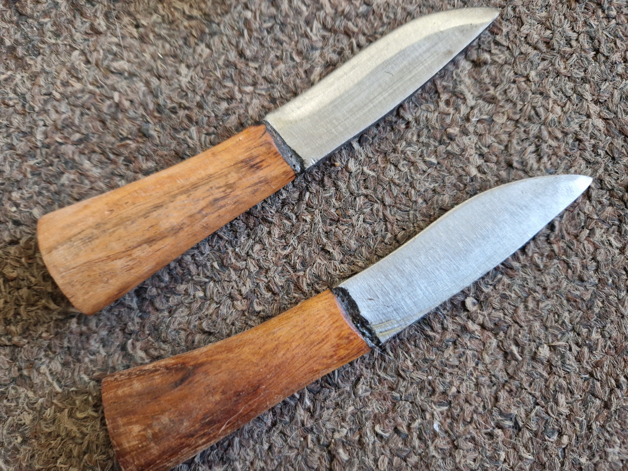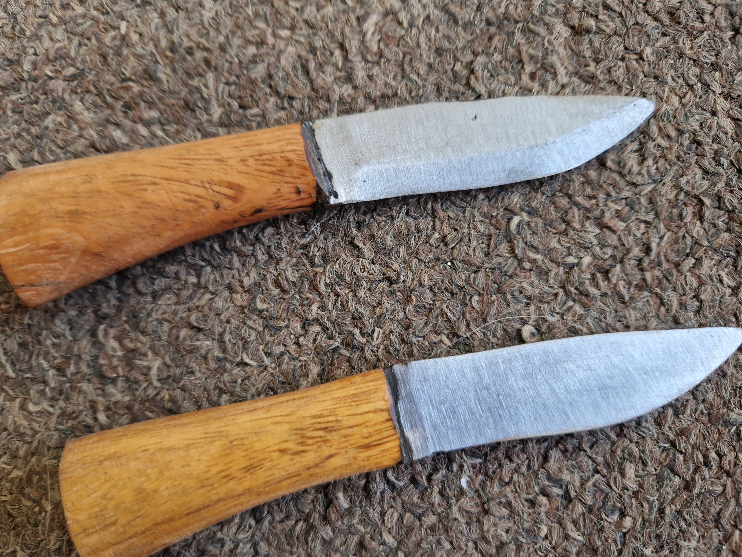 ОПИС ПОШКОДЖЕНЬ. ПОДРЯПКИ НА РУЧКІ, ПОДРЯПКИ НА ШКІРІ, ЗМІНИ КОЛЬОРУ. ОДИН З МАЛЕНЬКОГО НОЖА НЕ ЗАТОЧЕНИЙ,