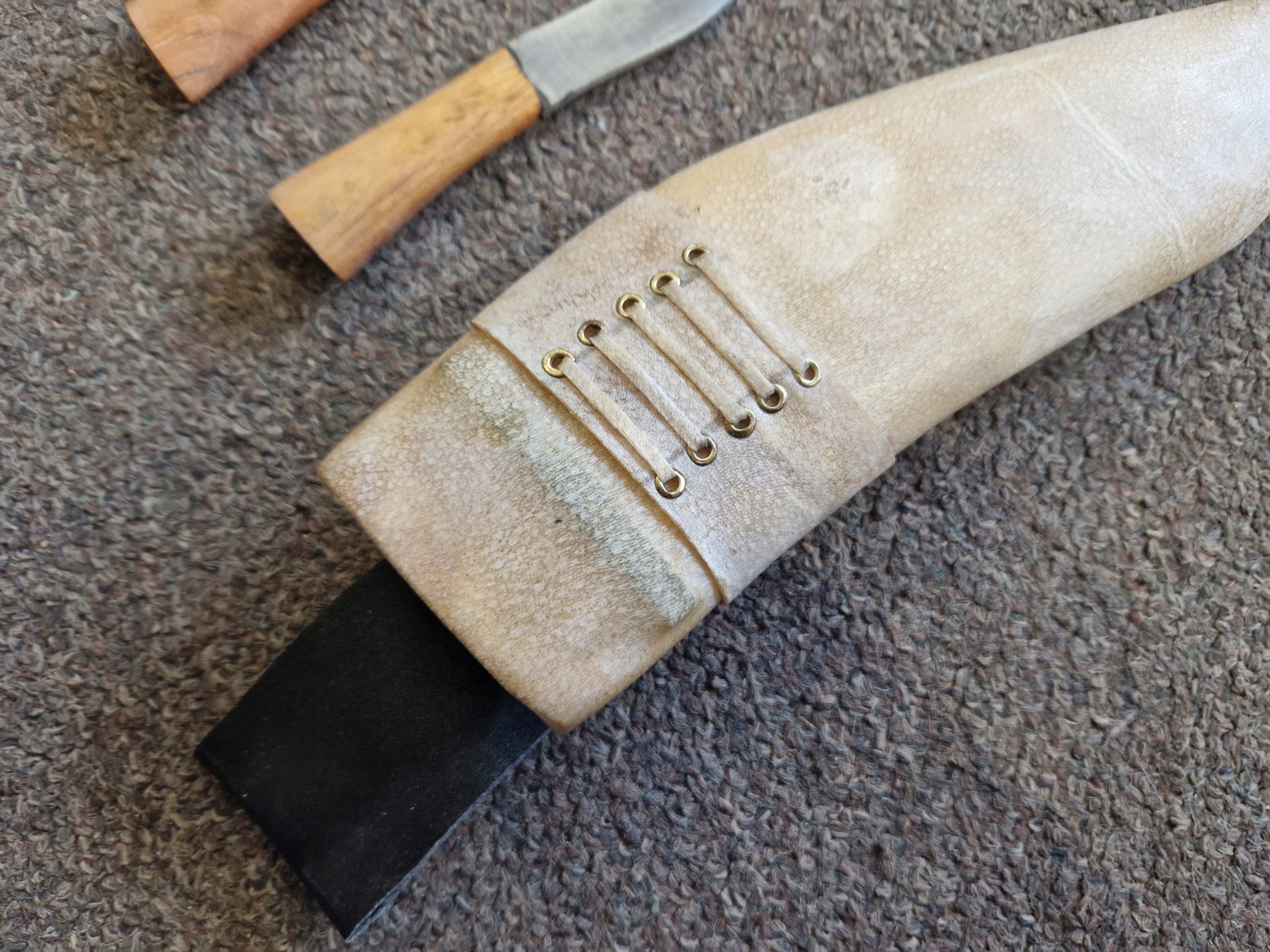 Зовнішній вигляд шкіри на піхвах може дещо відрізнятися за кольором і відтінком від того, що можна побачити на фото. Можливі потертості або зміна кольору шкіри піхви, що є нормальним явищем.