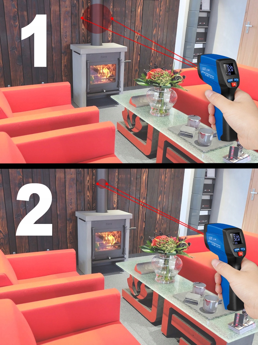 Для виконання правильного вимірювання необхідно, щоб поле вимірювання пірометра не виходило за межі об’єкта, температуру якого ми вимірюємо.