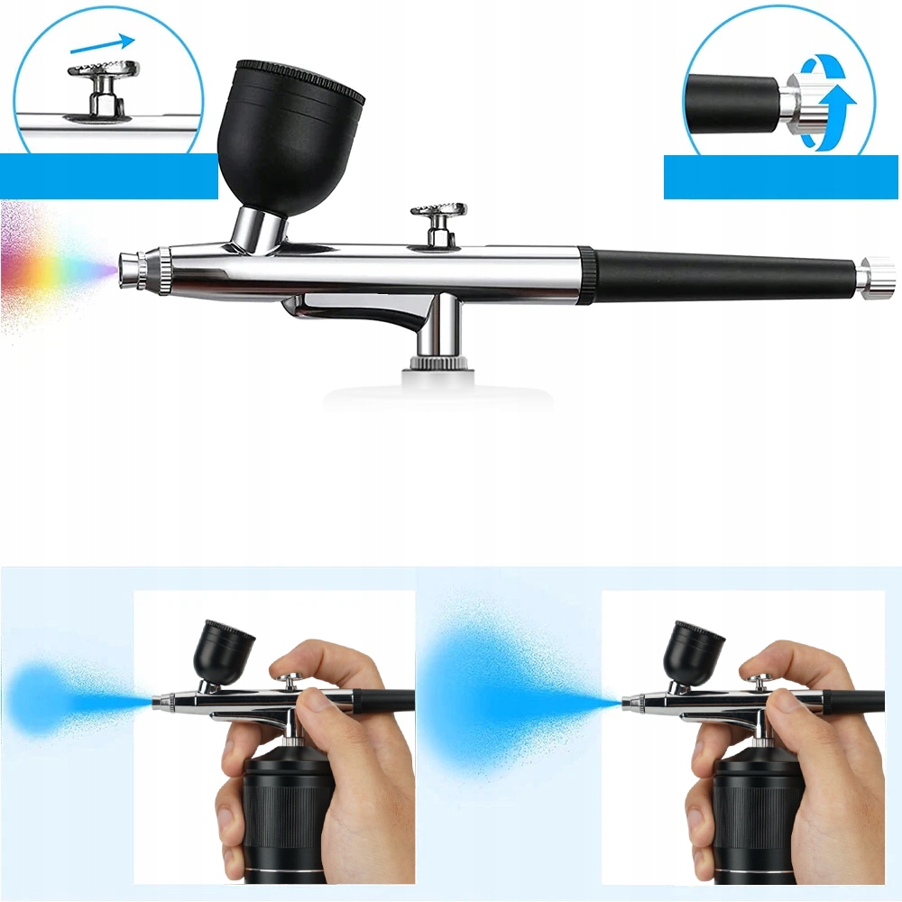 - Цей пневматичний пістолет з насадкою з діаметром 0,3 мм дозволяє більш точне управління потоком фарби і обмежує надмірне обприскування. Ви можете скрутити регулятор, , щоб контролювати кількість обприскування, що збільшує вашу можливість детальної роботи.