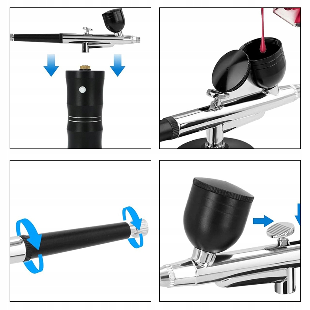 - Набір містить 3 чашки фарби (10cc, 20cc, 40 куб. См) та 5 щіток для чищення. Кухольна круга -це оптимальний потік фарби та полегшує очищення. Примітка. Якщо пістолет для розпилення не використовується тривалий час, його слід негайно очистити, щоб запобігти засміченню.