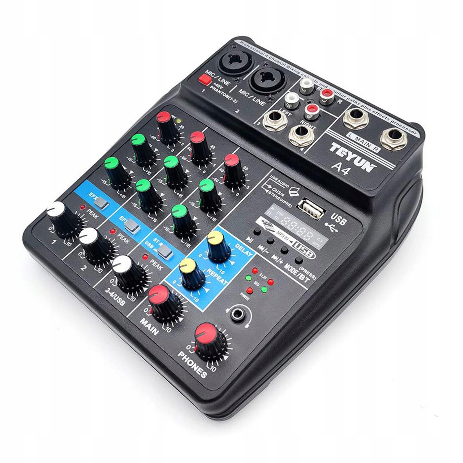 48 В фантомний джерело живлення: використовує 48 В фантомного джерела живлення, що дозволяє використовувати професійні ємнісні мікрофони для запису та забезпечує професійні враження при настройці. Ви можете відрегулювати глибину реверберації та ефект затримки, регулюючи ручку, щоб створити для себе різні відчуття настройки. Пристрій може впоратися з будь -яким завданням, незалежно від того, чи використовуєте ви в прямому ефірі або навчаєте в Інтернеті.