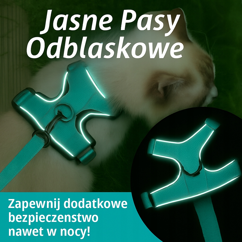 Шлея оснащена світловідбиваючими смужками, які значно підвищують видимість вашого вихованця в темний час доби та під час прогулянок у похмурі дні або при обмеженому освітленні. Завдяки цьому водії та інші перехожі швидше помітять вашого кота або собаку, що значно підвищує рівень безпеки під час вечірніх прогулянок. Це ідеальне рішення для відповідальних доглядачів, які дбають про кожну деталь.