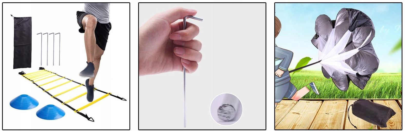 Цей набір є комплексним тренування рухової координації, витривалості та сили. Конуси, парашут, драбина та якорі дозволяють виконувати різноманітні вправи, які зміцнять ваше тіло та покращать загальну фізичну форму.