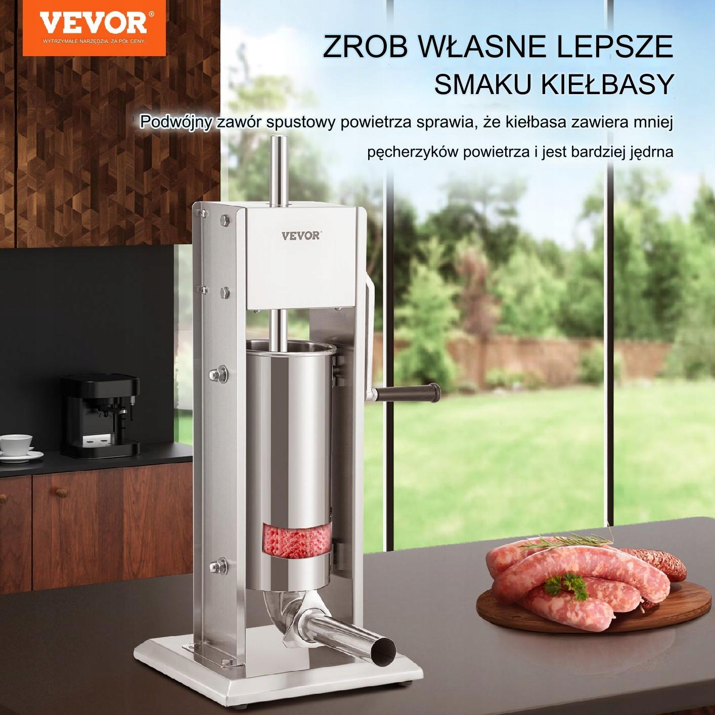 Ця машина для набивання ковбасів оснащена клапанами, що вивільняють подвійне повітря, завдяки яким ковбасами жорсткіші та містять менше бульбашок повітря. Він може бути пристосований до швидкої або вільної швидкості, що забезпечує більш ефективну та зручну роботу. Велика потужність 5 літрів ідеально підходить для комерційних застосувань, таких як супермаркети, ресторани тощо.